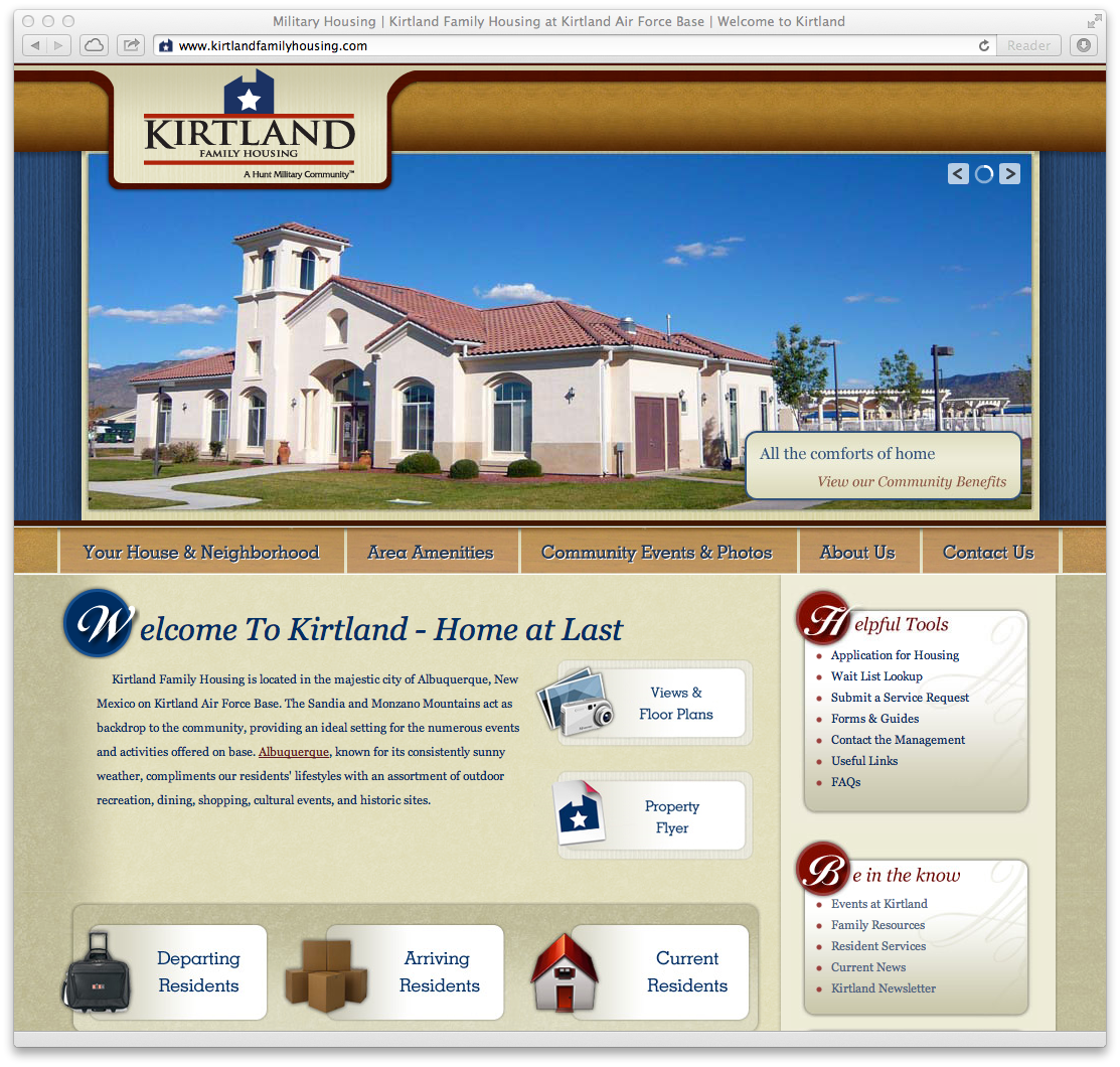 Web Design for Kirtland Family Housing under Hunt Companies. http://www.kirtlandfamilyhousing.com