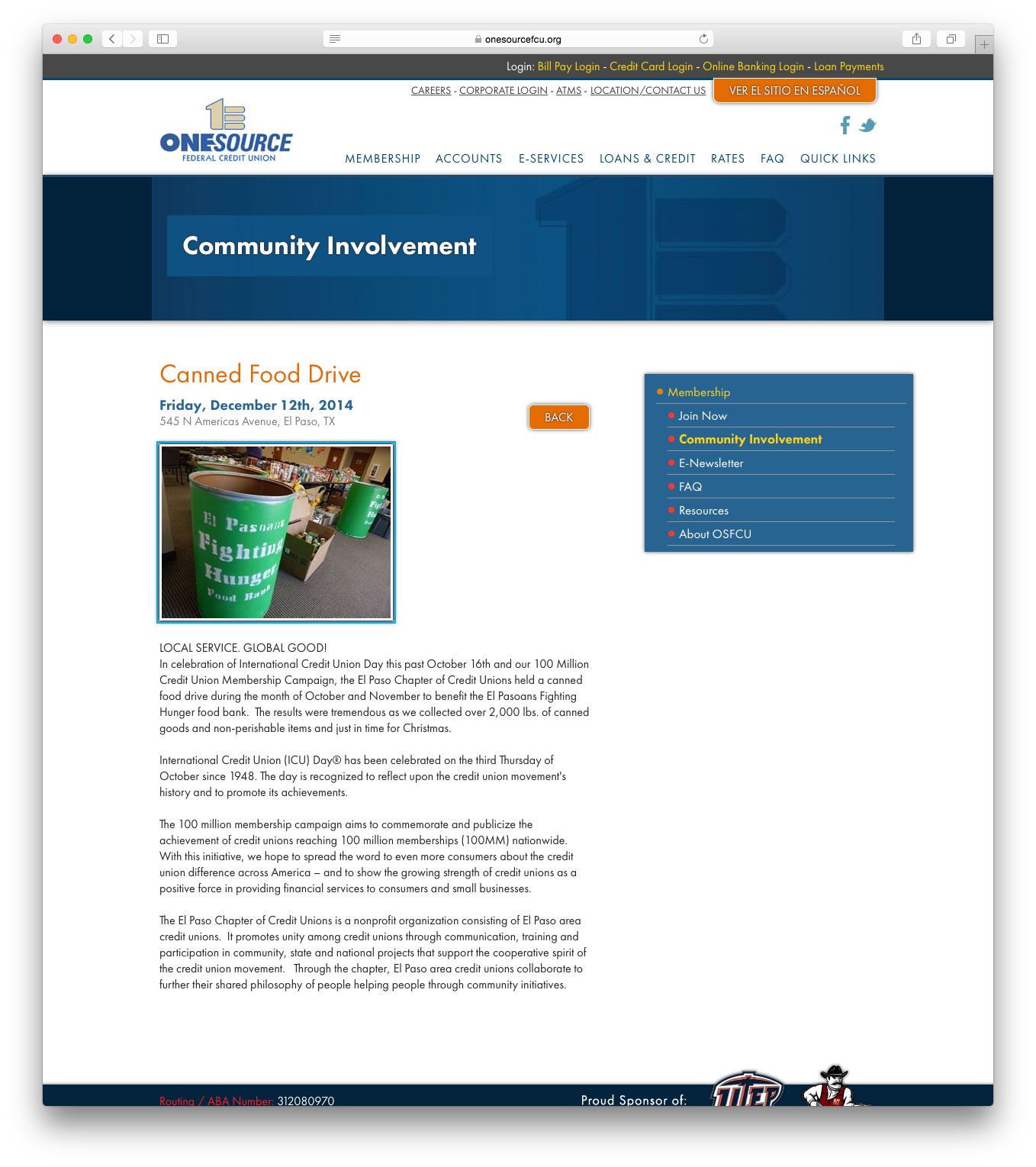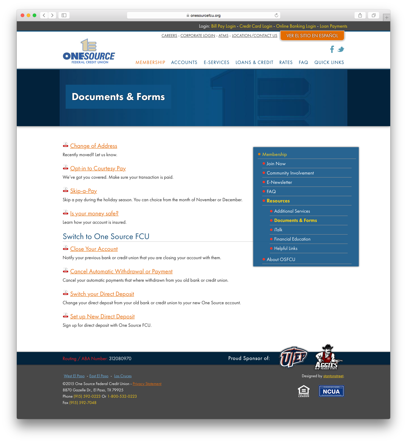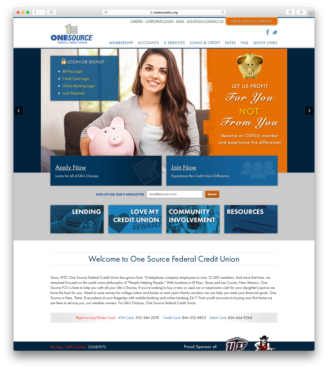 Responsive Web Design for One Sour Federal Credit Union. https://www.onesourcefcu.org